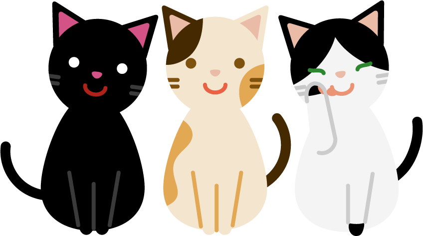 黒猫、三毛猫、ハチワレ猫が並んだねこの日のイラストです。