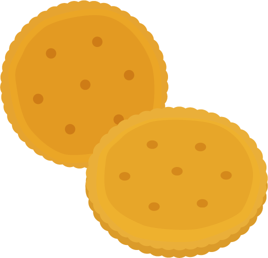 丸いサクサクした小麦粉のお菓子、ビスケットのイラストです。2つ重なっている。