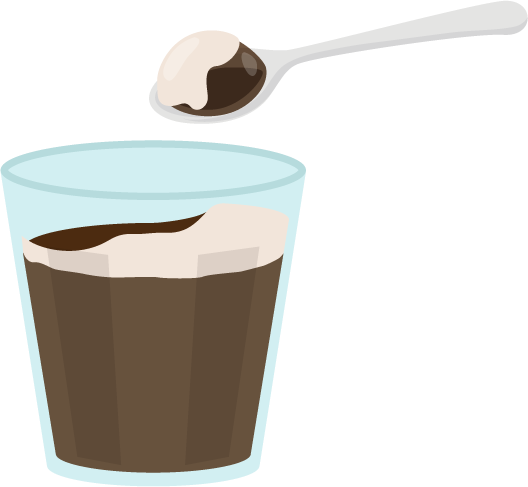 カップに入ったコーヒーゼリーをスプーンですくうイラストです。クリームがとろっとしている。
