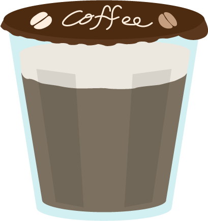 カップに入ったコーヒーゼリーのイラストです。上にクリームが乗っている。