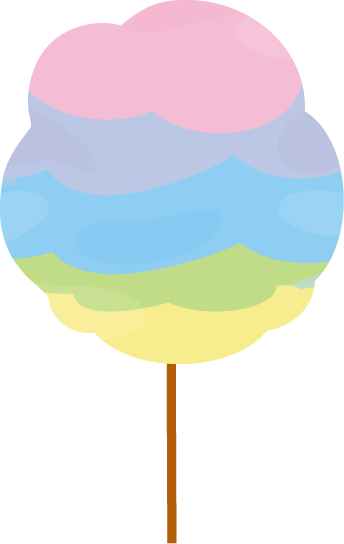 縁日で売られているパステルレインボー色の綿あめ(わたあめ)、ワタアメ、綿菓子のイラストです。