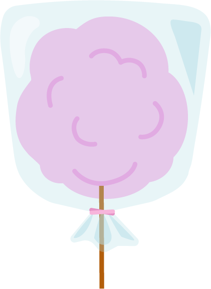 透明のビニール袋に入った、縁日で売られているピンク色の綿あめ(わたあめ)、ワタアメ、綿菓子のイラストです。