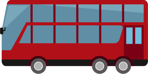 赤色の2階建てのバスのイラストです。上下に席がある、大きなバス。