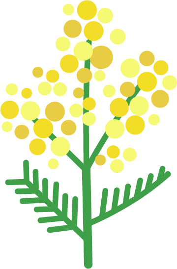 黄色くてふわふわした小さい花のミモザ花束のイラストです。