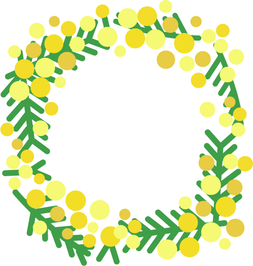 黄色くてふわふわした小さい花のミモザのリースのイラストです。