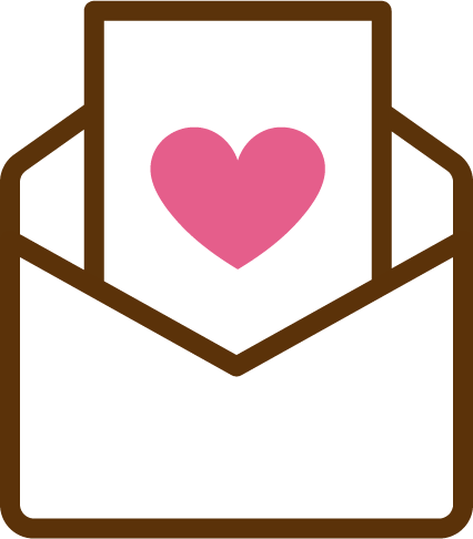 封筒からピンク色のハートマーク付きの紙が見えている、ラブレターをイメージしたアイコンのイラストです。愛の手紙。茶色の線。
