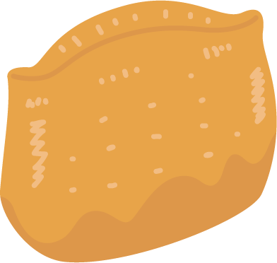 甘く煮た油揚げのなかに酢飯がつまっている稲荷寿司のイラストです。おいなりさん。