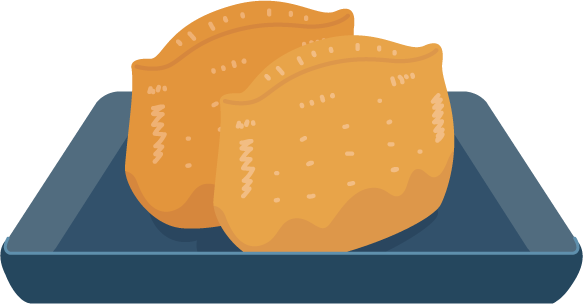甘く煮た油揚げのなかに酢飯がつまっている稲荷寿司のイラストです。おいなりさん。お皿に乗っている。
