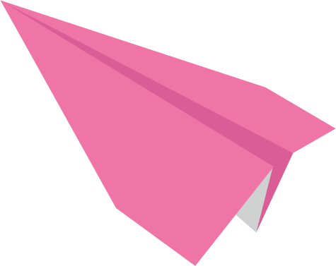 折り紙で折った紙飛行機のイラストです。ピンク色。
