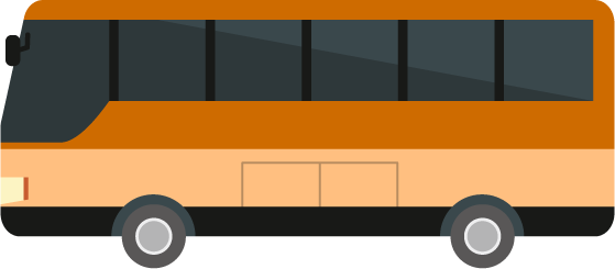 観光などに使用される大型バスのイラストです。観光バス、リムジンバス。オレンジ色の車体。