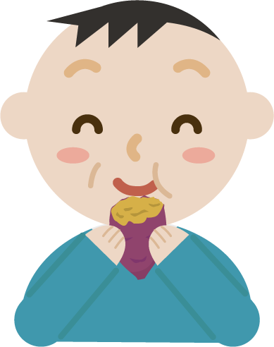 焼きたてのやきいもを頬張る中年のおじさんのイラストです。さつまいも。