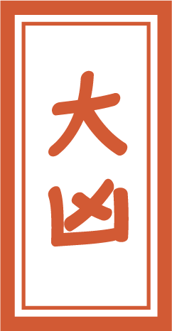 吉凶を占うおみくじの「大凶」の紙のイラストです。運勢。御神籤。赤色、朱色。