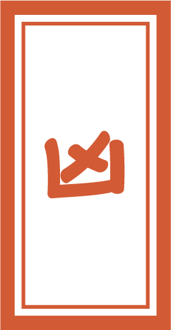 吉凶を占うおみくじの「凶」の紙のイラストです。運勢。御神籤。赤色、朱色。