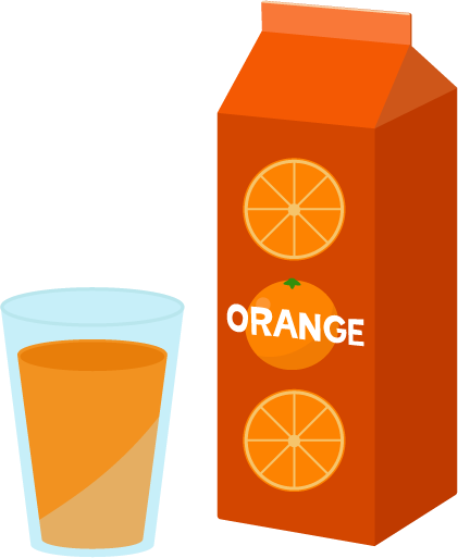 グラスに入ったオレンジジュースとオレンジジュースの紙パックのイラストです。