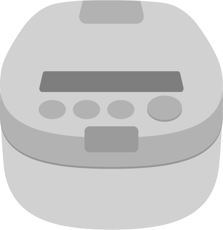 お米を炊く家電の炊飯器のイラストです。白色。ライトグレー。