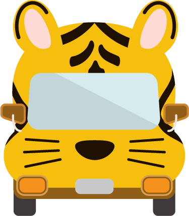 動物園、サファリパークで間近で動物を見ることのできる、虎(トラ)の見た目をしたバスのイラストです。正面を向いている。