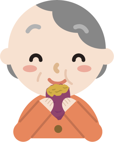 焼きたてのやきいもを頬張るおばあちゃん(老人)のイラストです。さつまいも。
