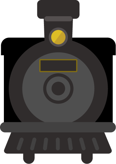黒い汽車、蒸気機関車(SL)の正面向きのイラストです。