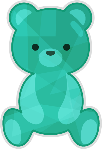 キラキラしてぷっくりした可愛い文房具、雑貨のシールのイラストです。緑色、グリーンの熊(クマ)型のキラキラ。