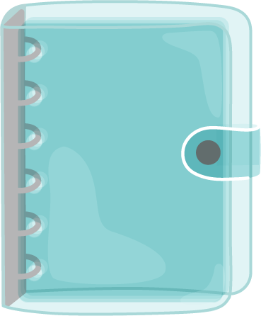 透明のシステム手帳のイラストです。透明なシートにシールを集める、シール帳。
