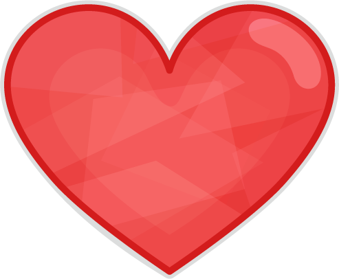 キラキラしてぷっくりした可愛い文房具、雑貨のシールのイラストです。赤色のハート型のキラキラ。