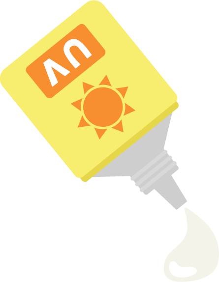 太陽のマークのUVカットのクリームのイラストです。キャップを外して、中身を出している。紫外線、日焼け予防。